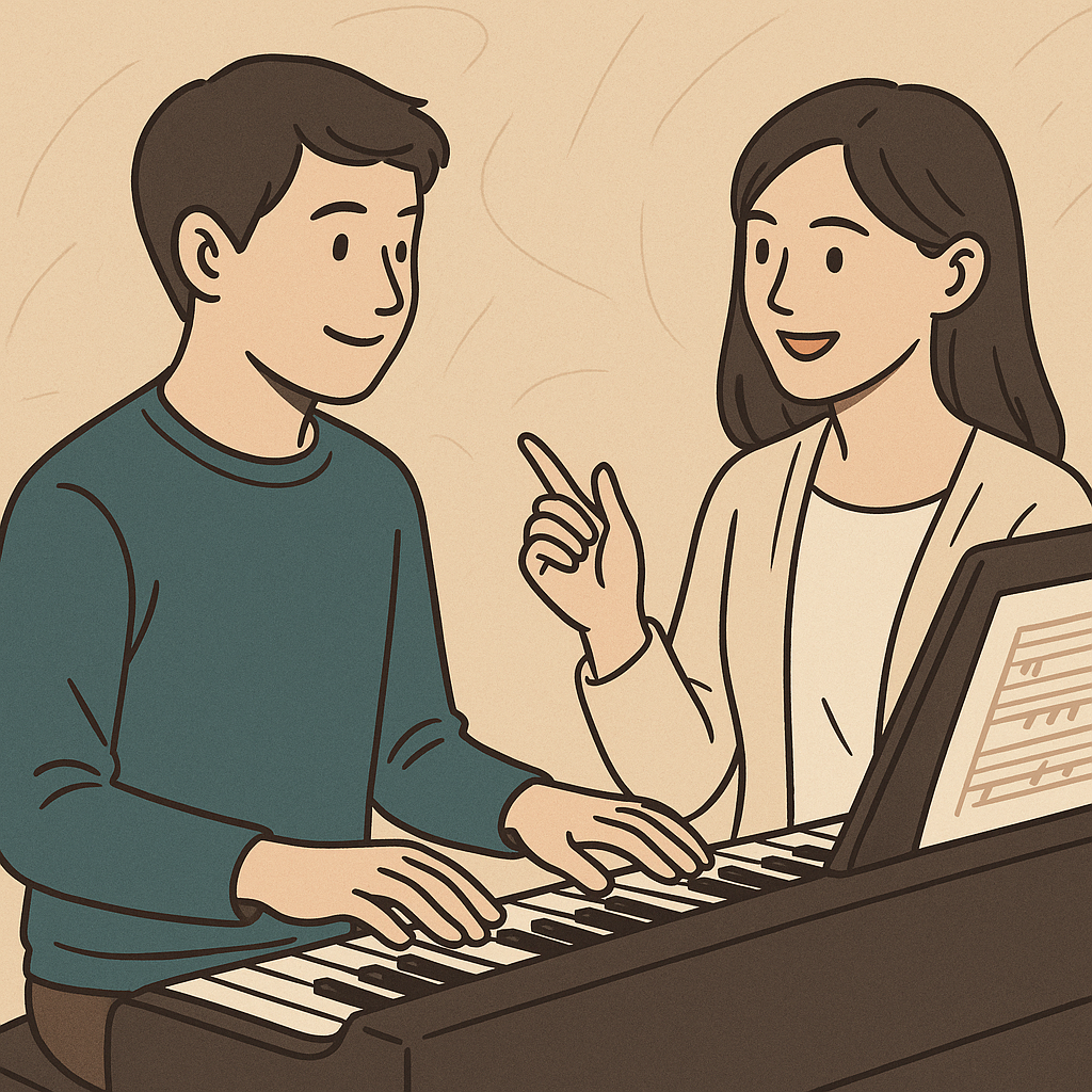 「うちのレッスンでは、まず『やりたい曲』や『どんな雰囲気で弾きたいか』を話しながら、簡単なメロディやリズム練習から一緒に始めます。独学より“圧倒的にハードルが低い”んですよね。」
